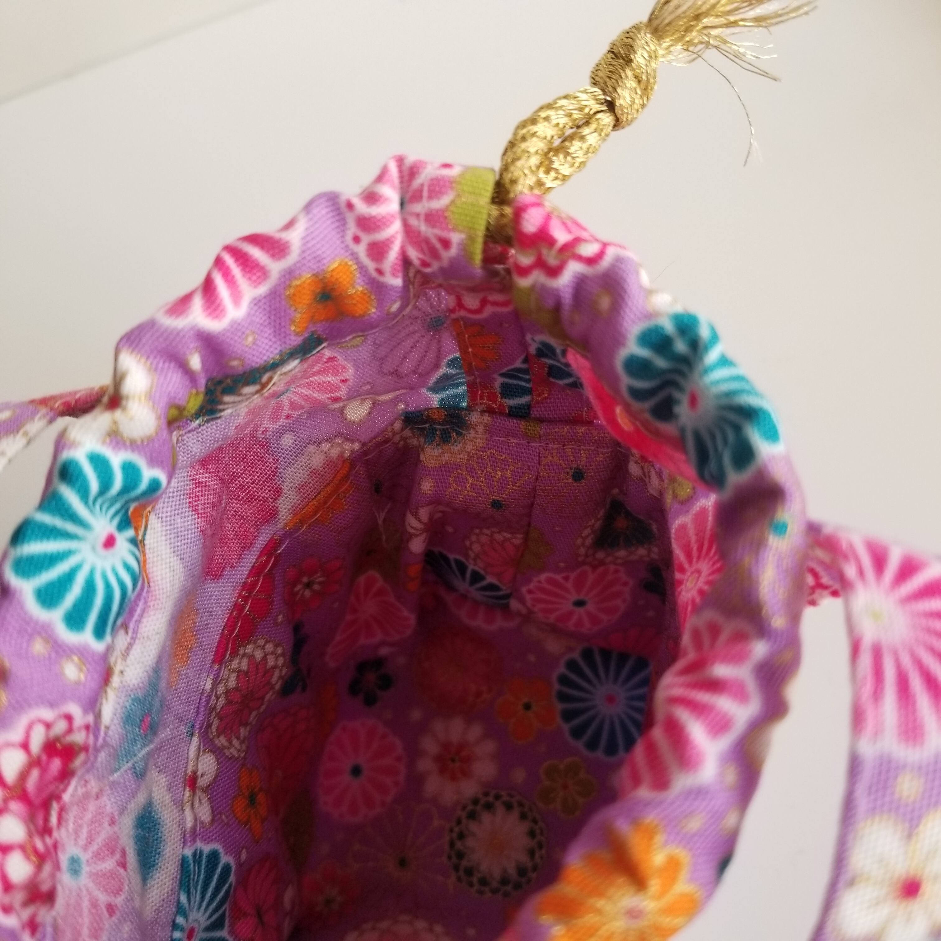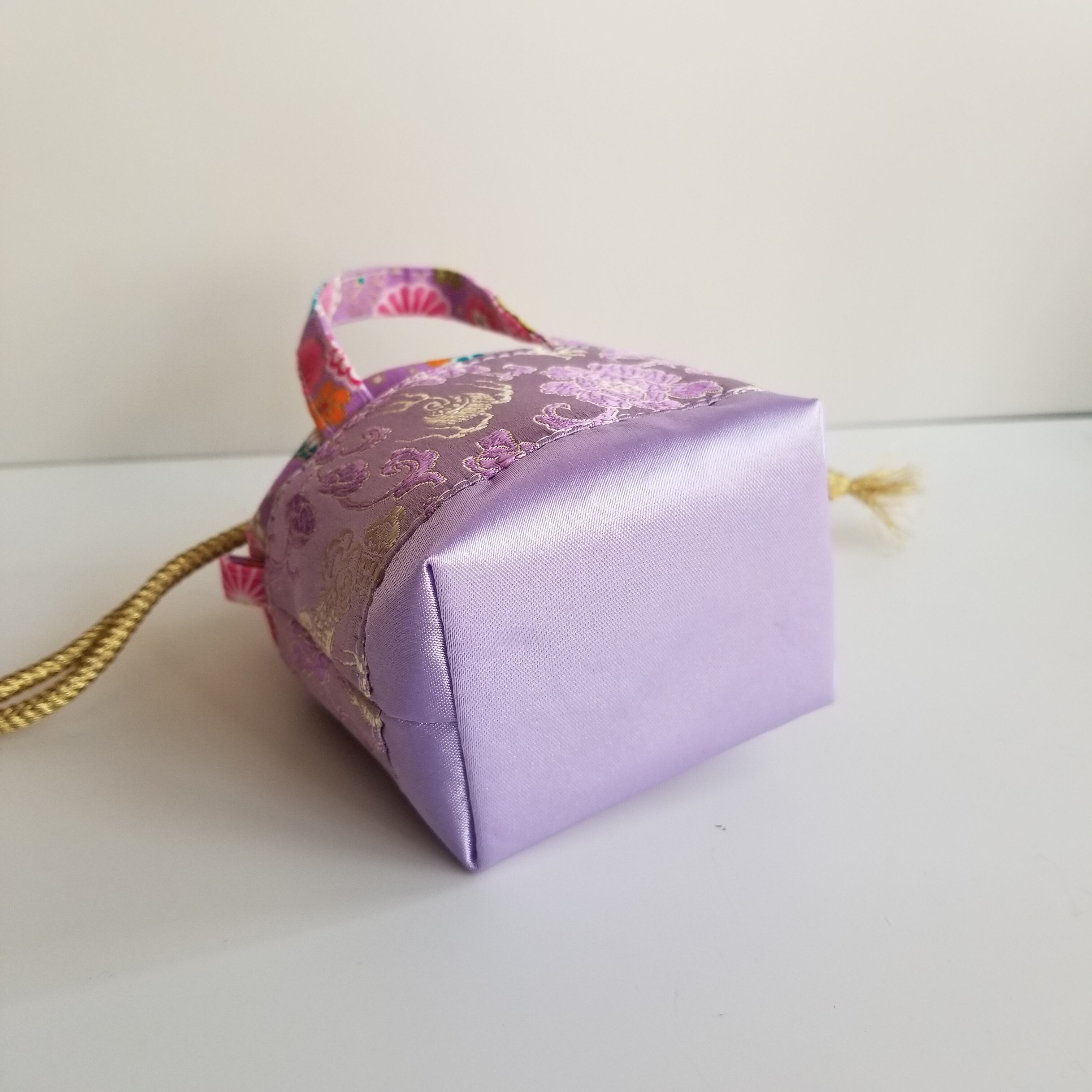 巾着ミニミニトート 薄紫 花柄