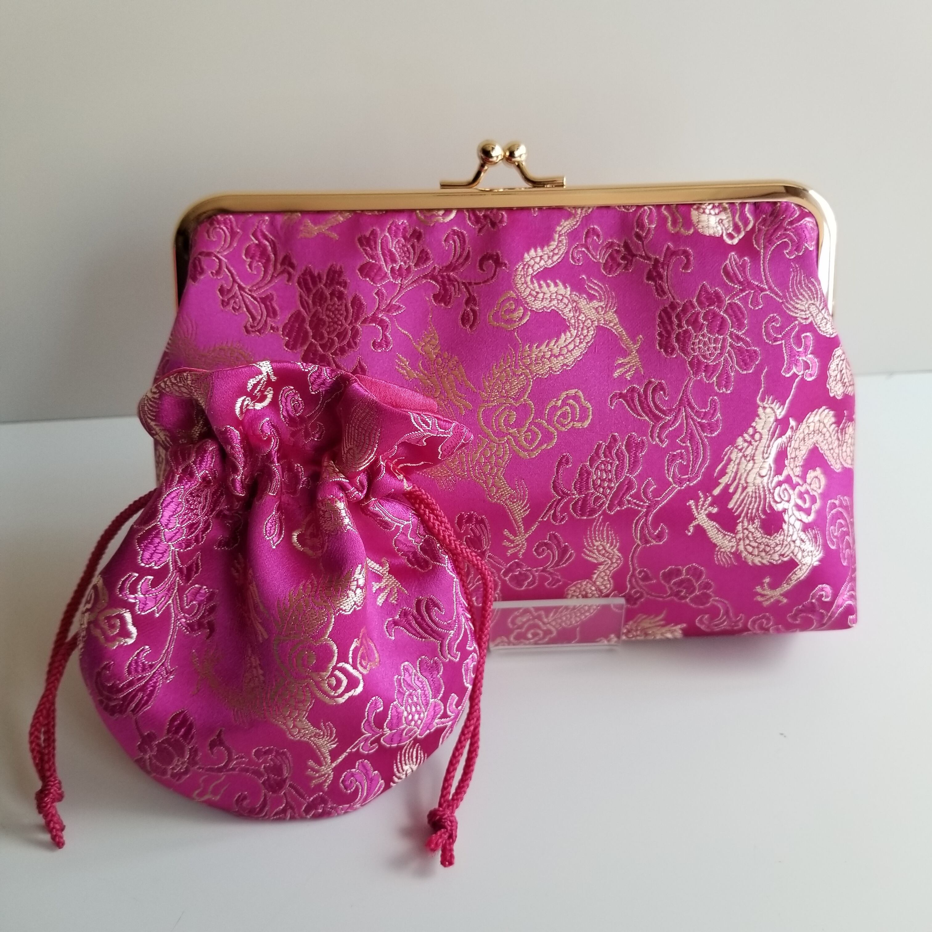 通帳がま口・ぷっくり巾着セット マゼンタ